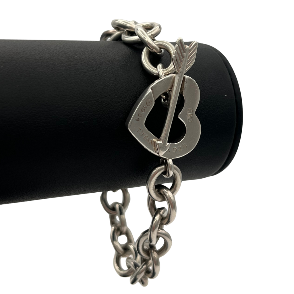 Tiffany & Co. Sterling Silver Heart and Arrow Chain Link Bracelet c. 1994