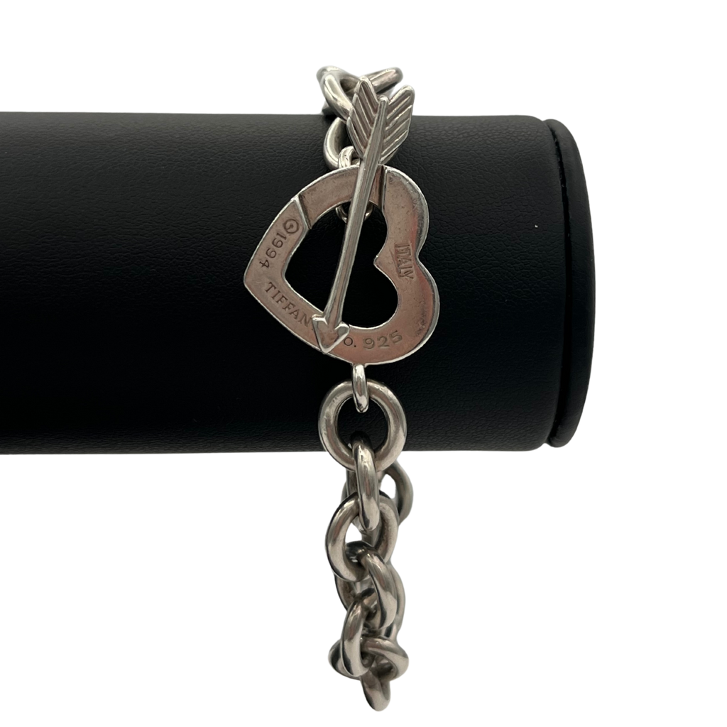 Beautiful Tiffany & Co. Sterling silver arrow and heart chain link bracelet c.1994.