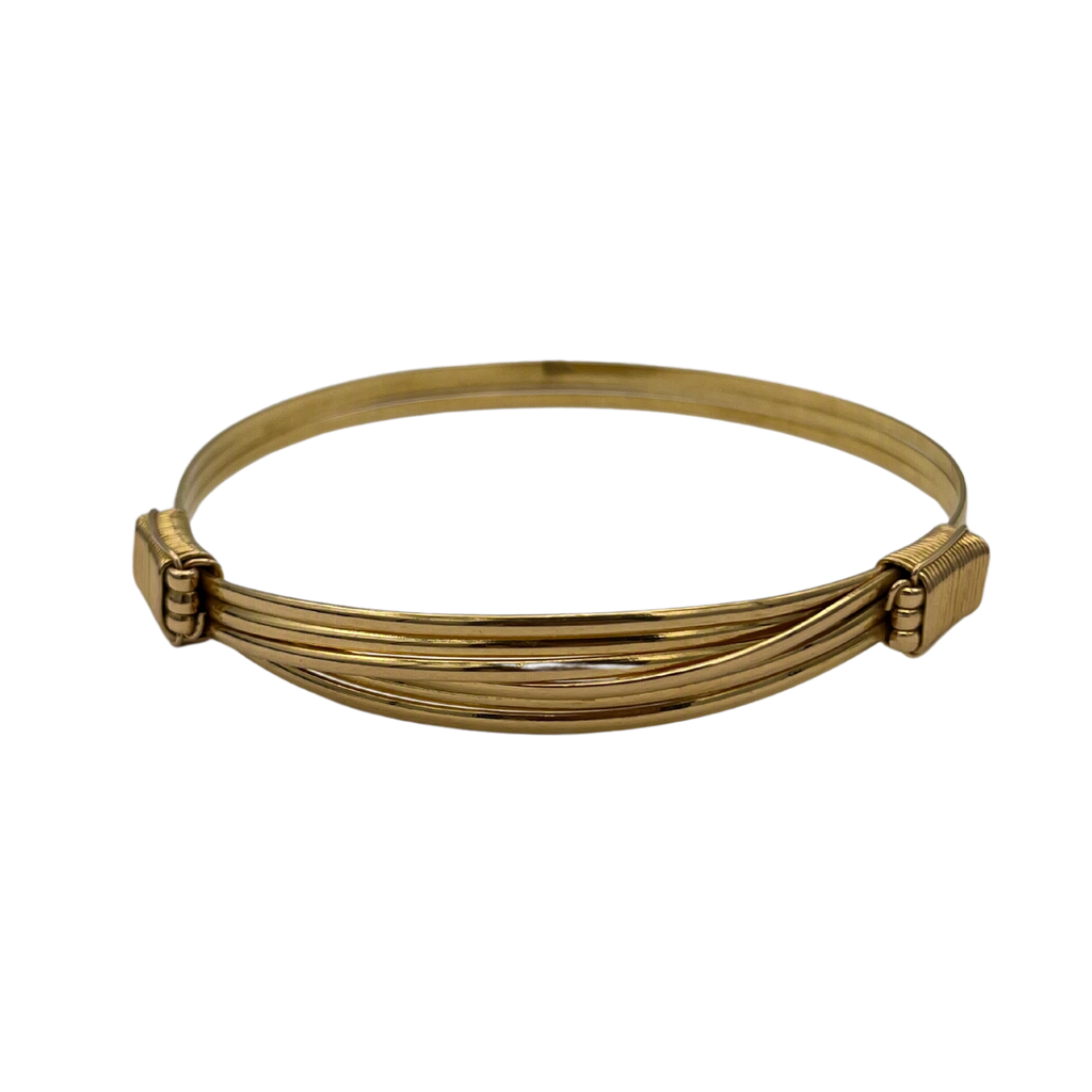 A beautiful hand crafted 18k gold bracelet with lovely sliders to adjust the bracelet to fit.