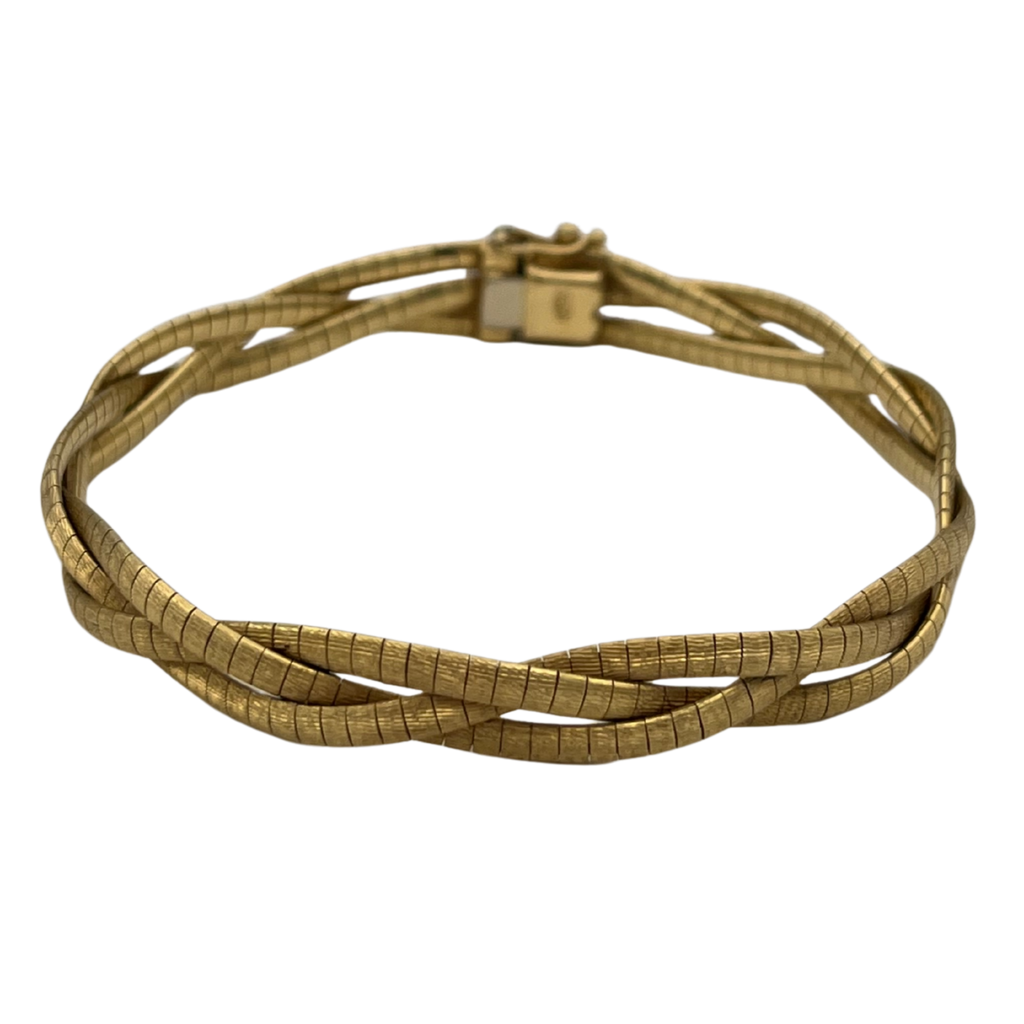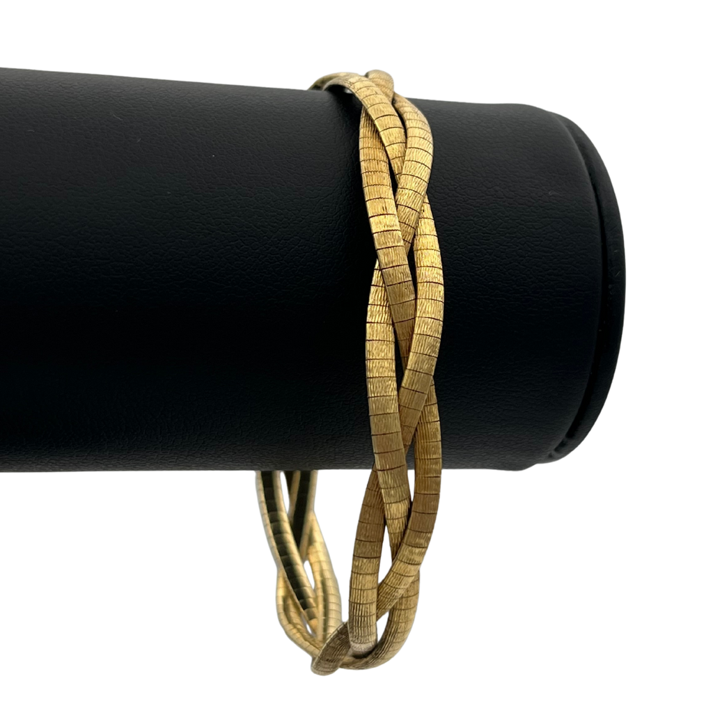 Vintage Italian 18k Yellow Gold Three-Strand Spaghetti Link Braided Bracelet