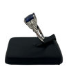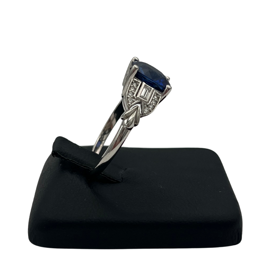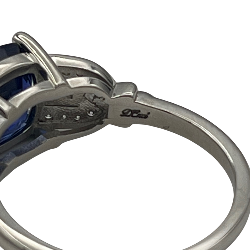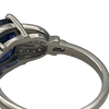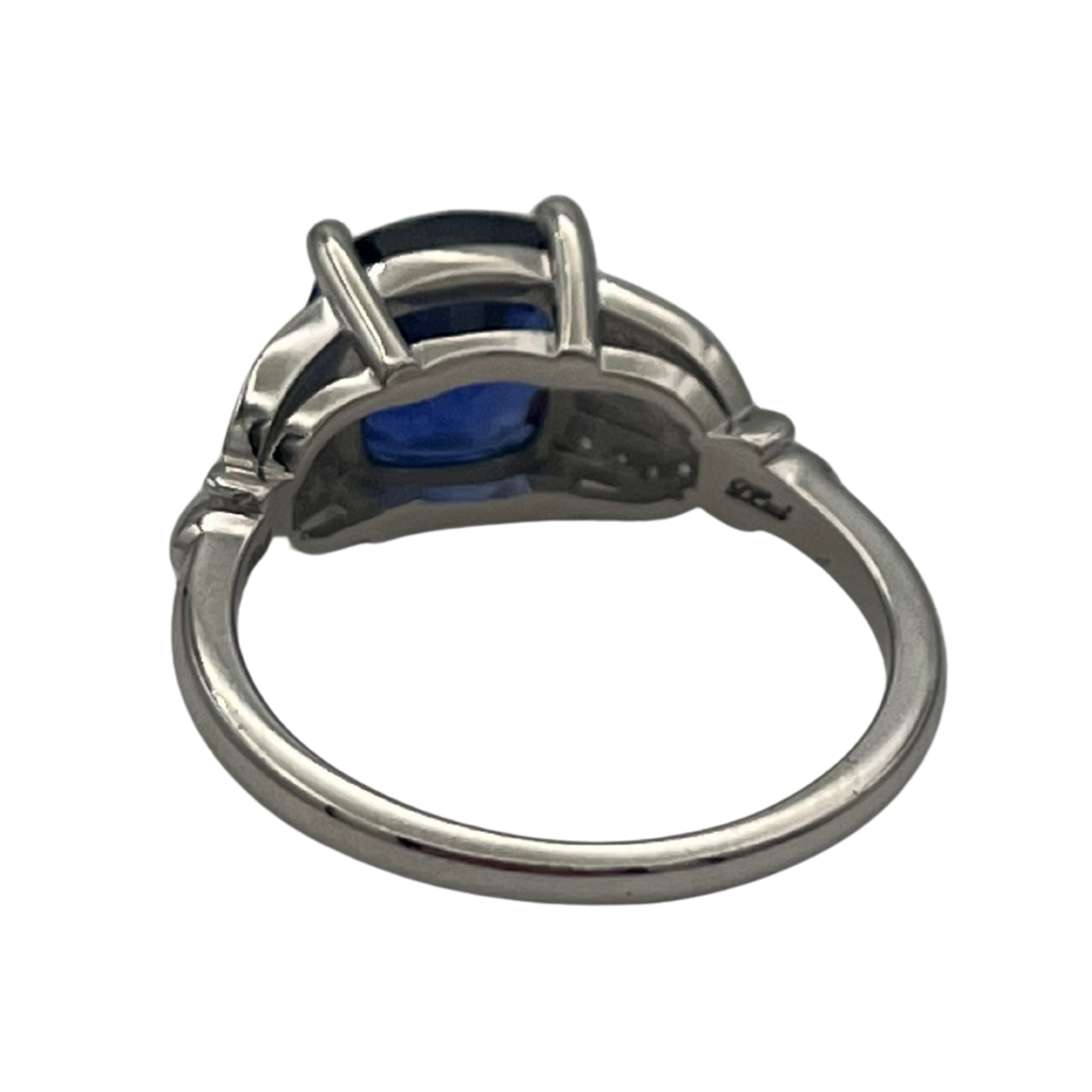 Stunning cushion cut sapphire and diamond ring set in platinum. Custom made for Daisy Exclusive by Monica Savage.