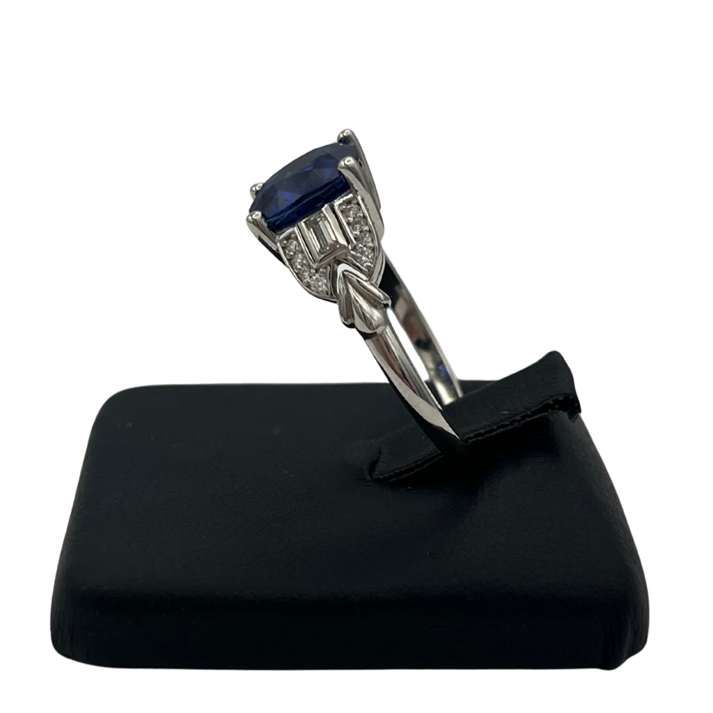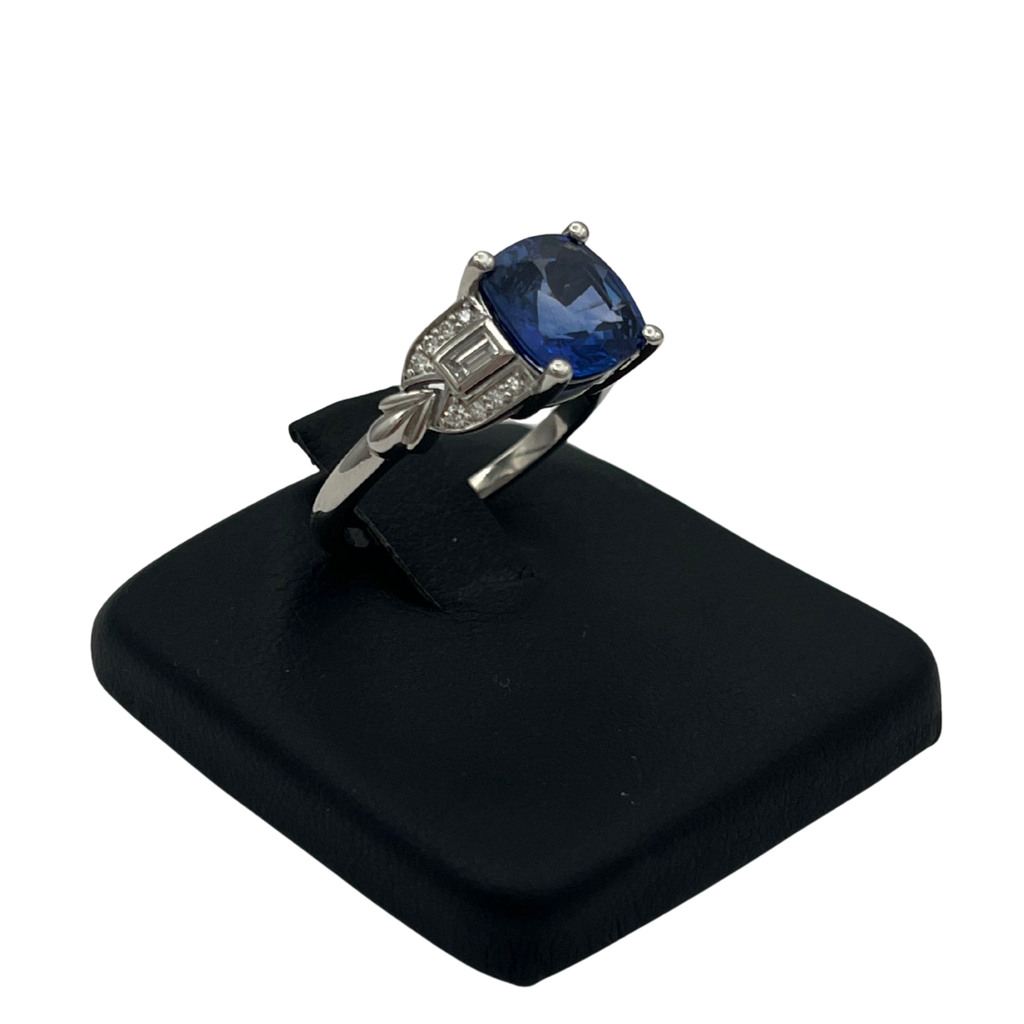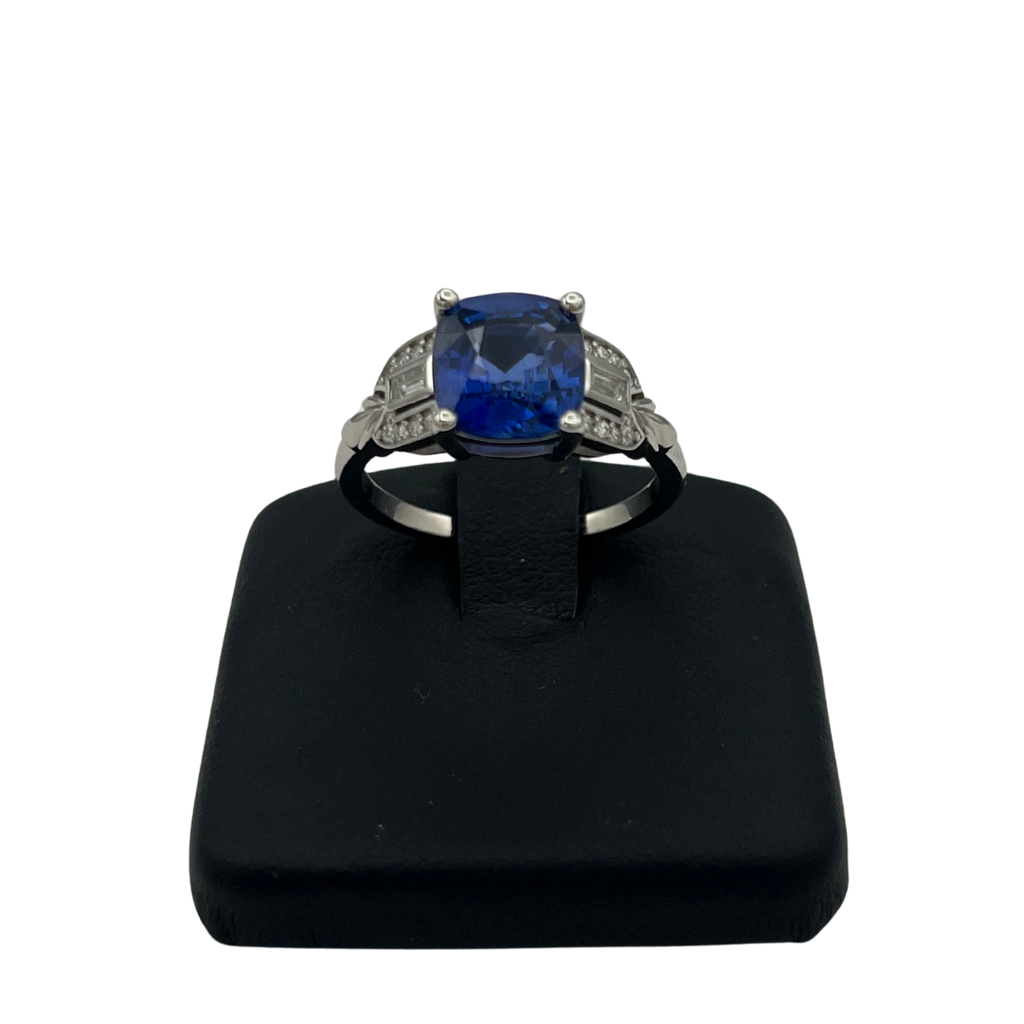 Sapphire: One (1) cushion cut Sri Lankan sapphire measuring 8.6mm x 8.3mm x 4.9mm, with a loose weight of 3.14ct