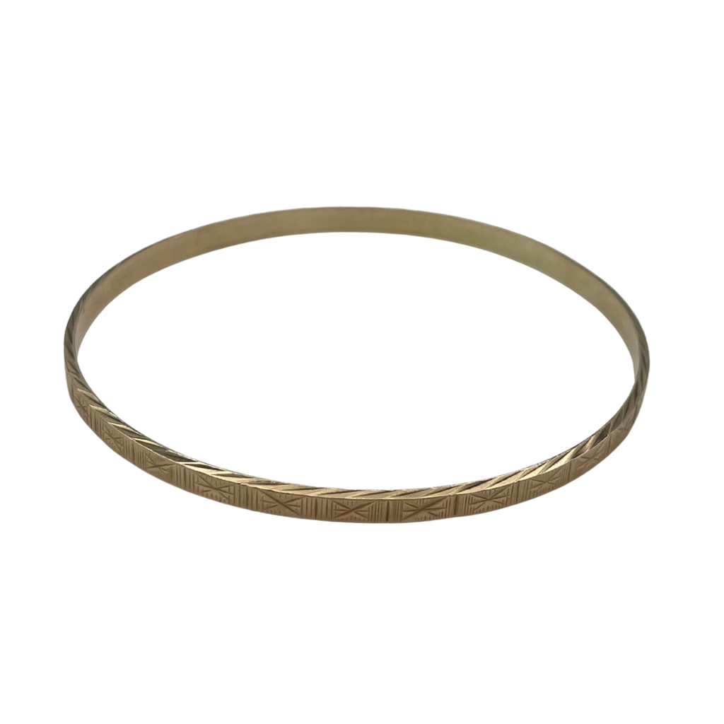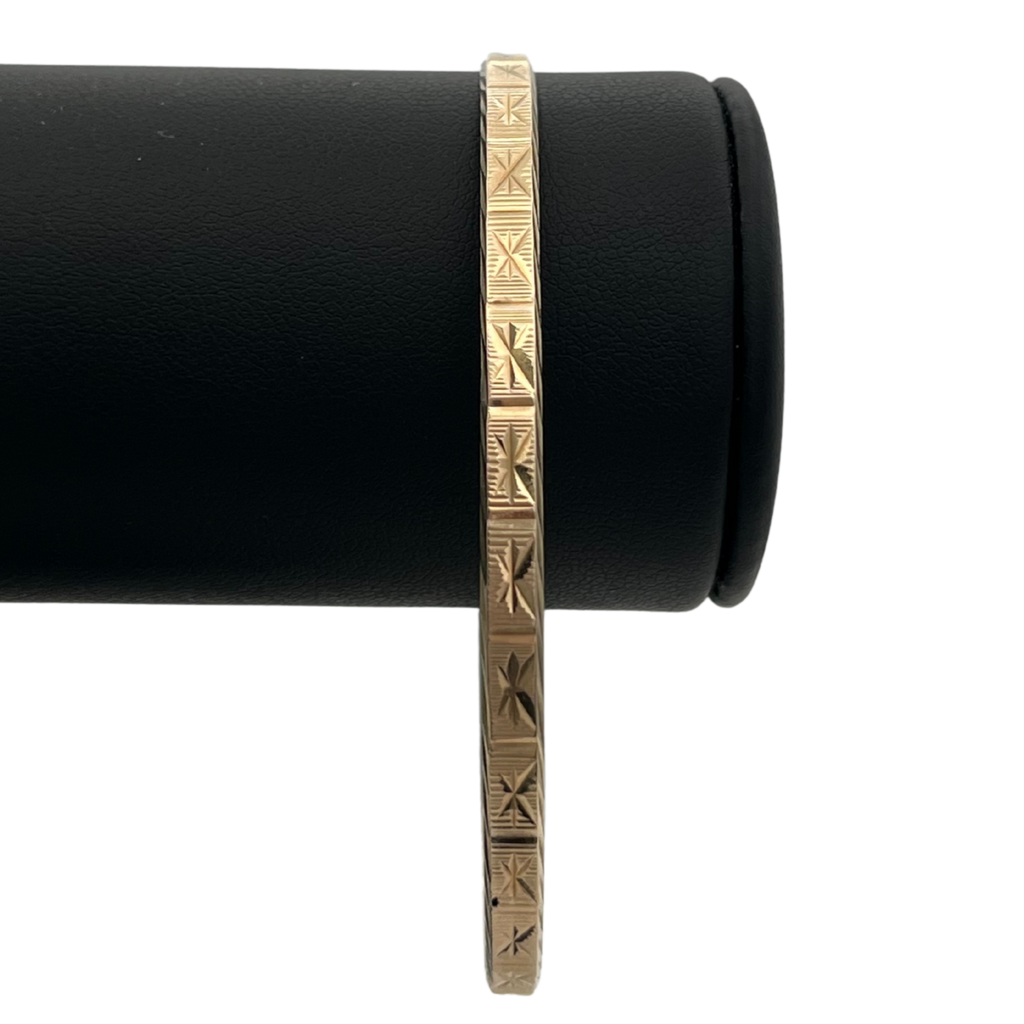 Vintage 14k Yellow Gold Engraved 3.98mm Bangle Bracelet