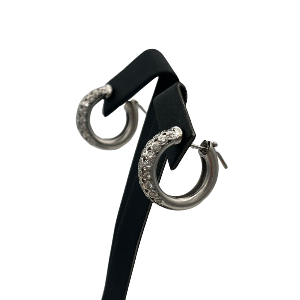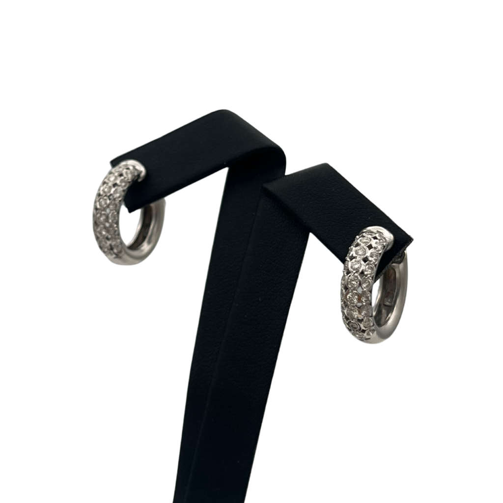 Vintage 18k White Gold 1.20ct Diamond Three Row Pave Huggie Earrings