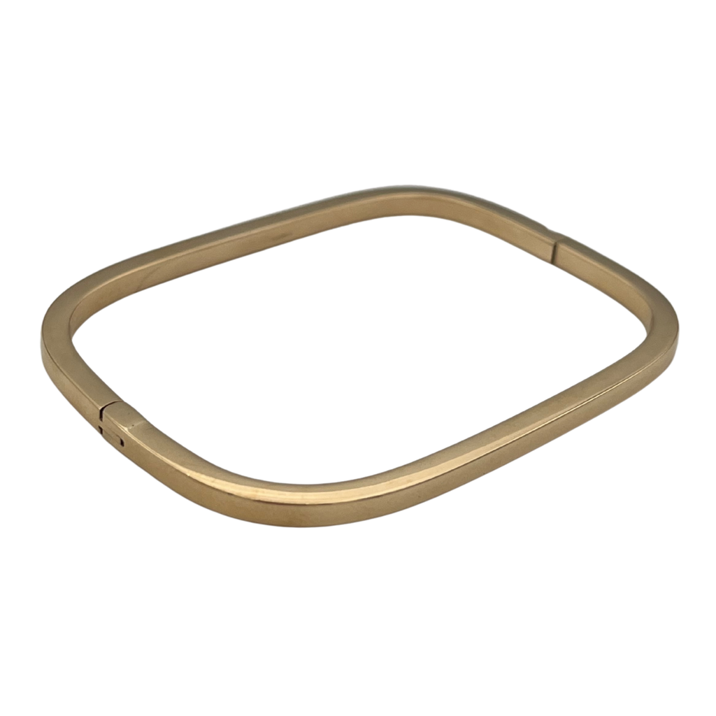 Vintage 14k yellow gold high polish squared geometric hinged bangle bracelet with push clasp.