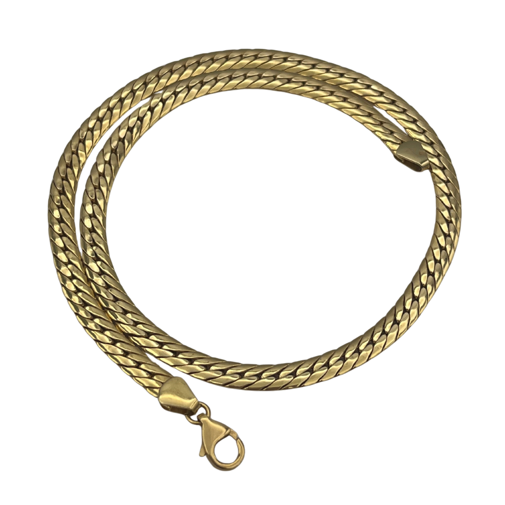 Vintage 18k yellow gold 5.6mm hollow herringbone chain with a lobster clasp.