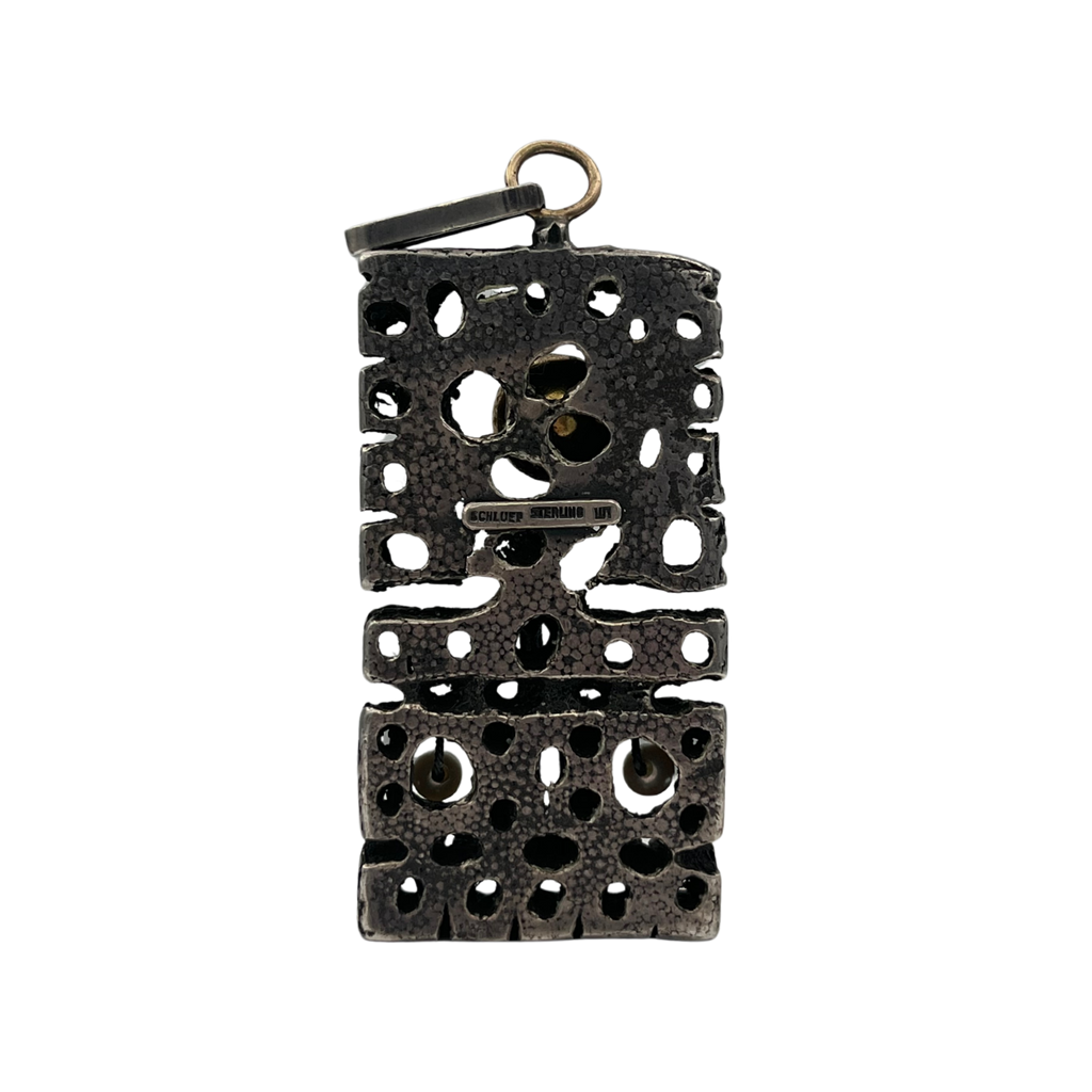 This signed Walter Schluep sterling silver pendant adorned with yellow gold and pearls is a wonderful example of Walter Schluep's ability to create wearable pieces of art.