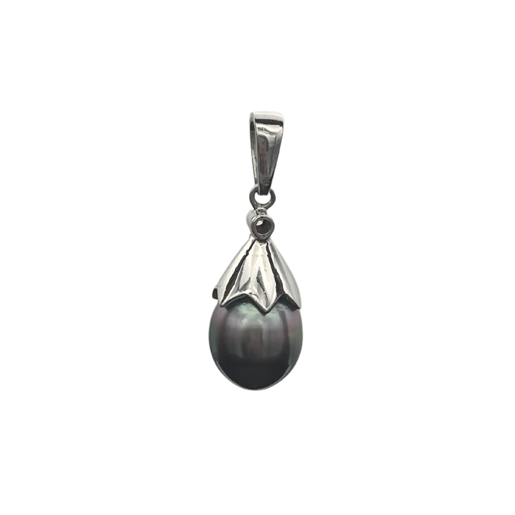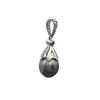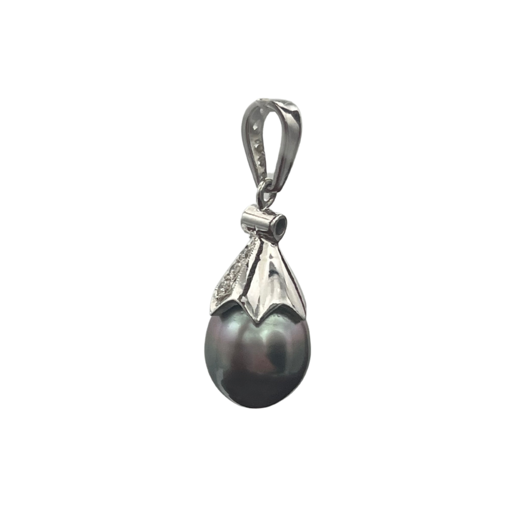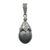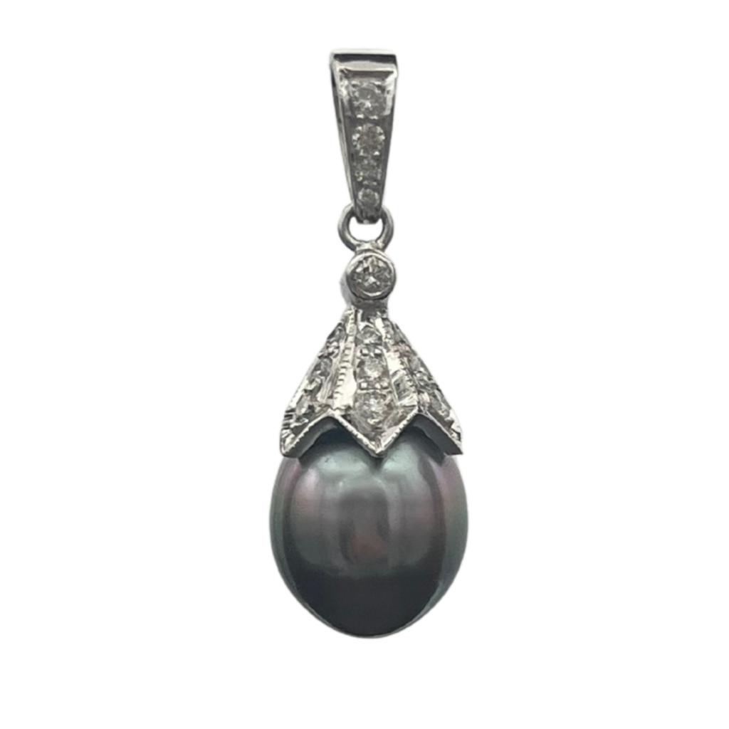 Vintage diamond and Tahitian pearl 18k white gold pear-shaped drop pendant.