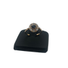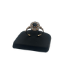 Sapphire : One (1) round faceted dark blue sapphire measuring approximately 5.0mm by 3.5mm. The colour is dark blue and the clarity is moderately included. There is a small natural cavity near one of the prongs. Slight abrasions are visible under magnification.