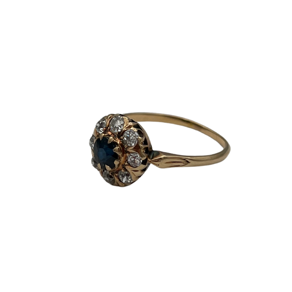 A beautiful antique sapphire ring with quality old cut diamonds set as a halo.
