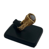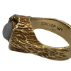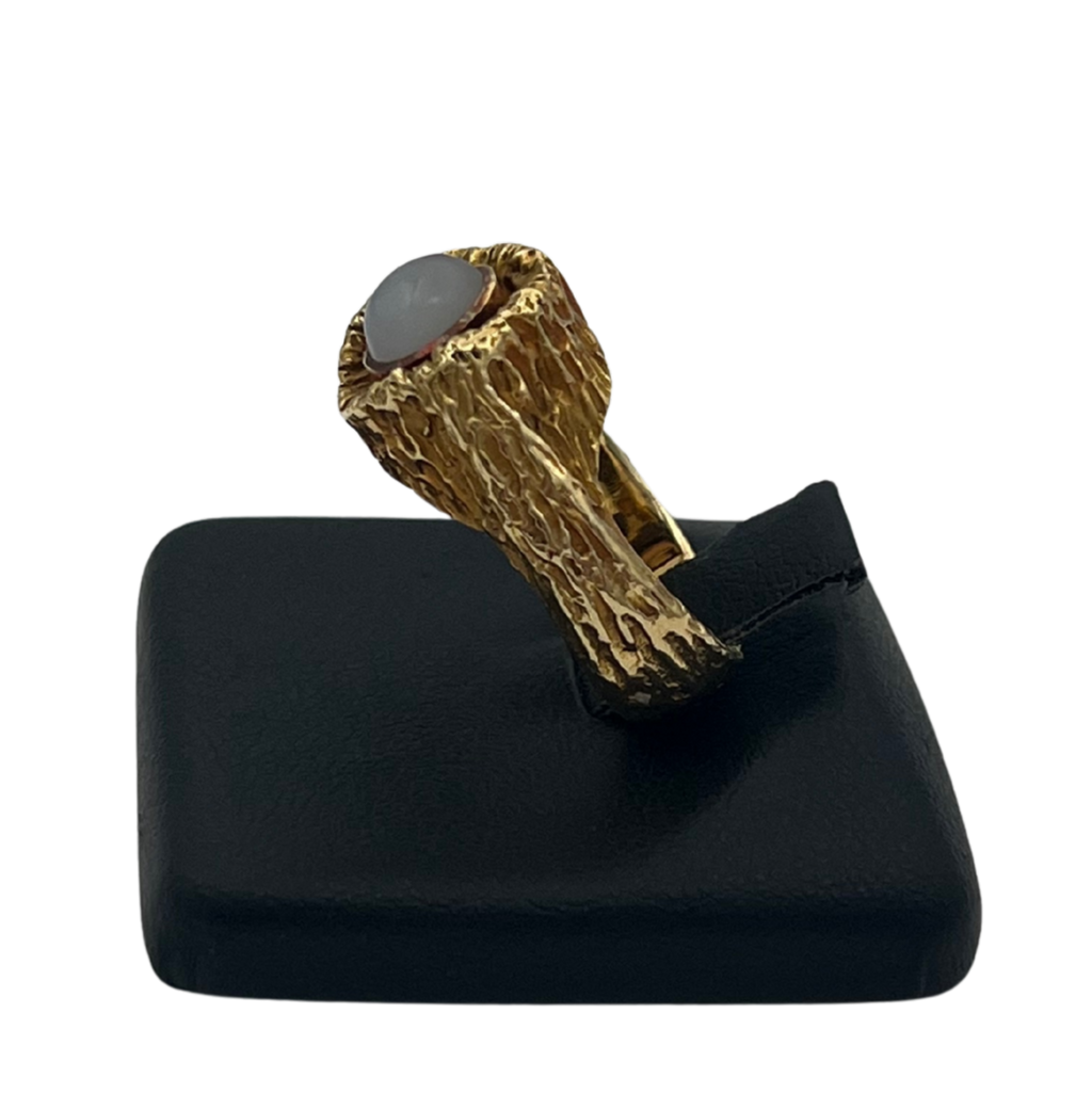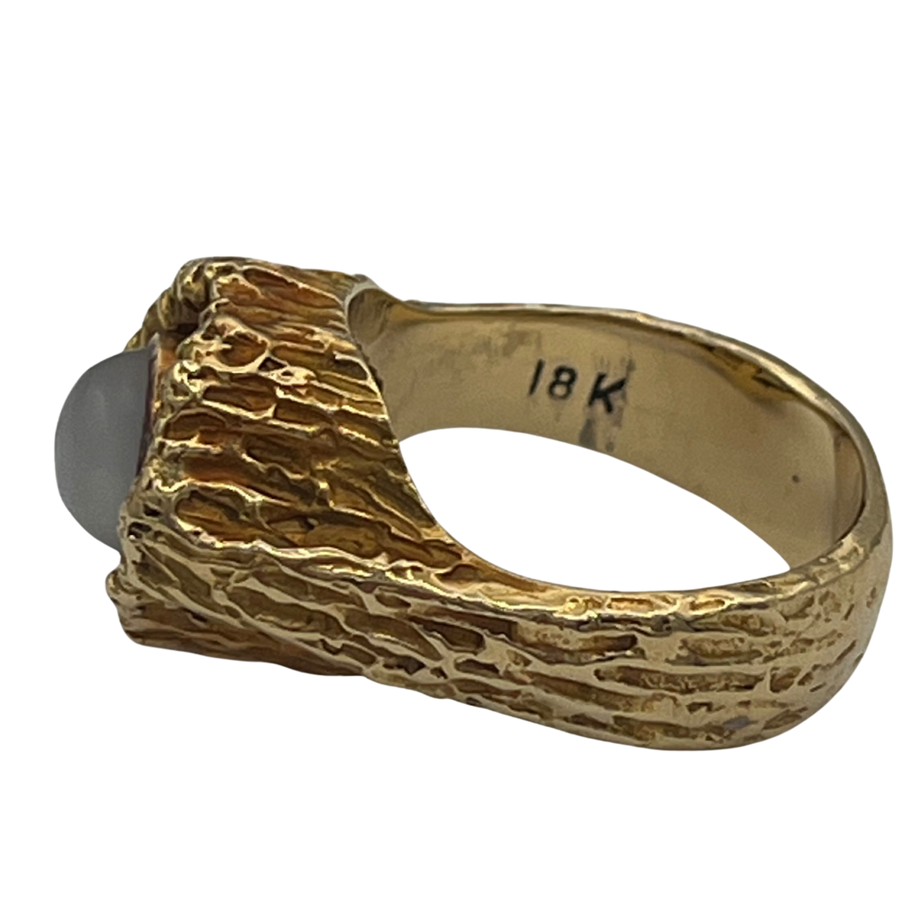 Estate signed Walter Schluep brutalist style Moonstone 18k yellow gold ring. This ring shows the true effect of a cat's eye chatoyancy sometimes seen in moonstone.