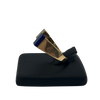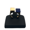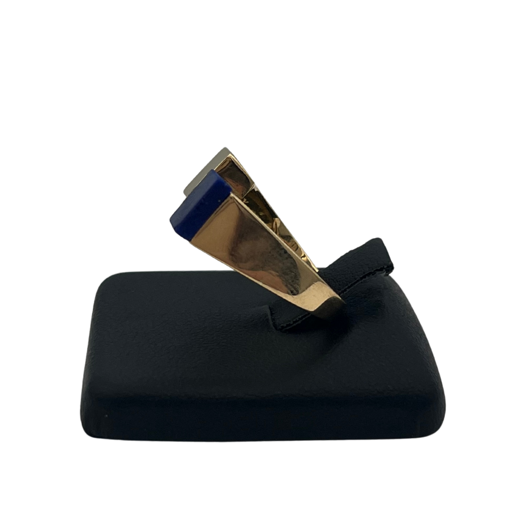 Vintage 18k yellow gold open-design ring with geometric square high polish gold and lapis lazuli.