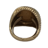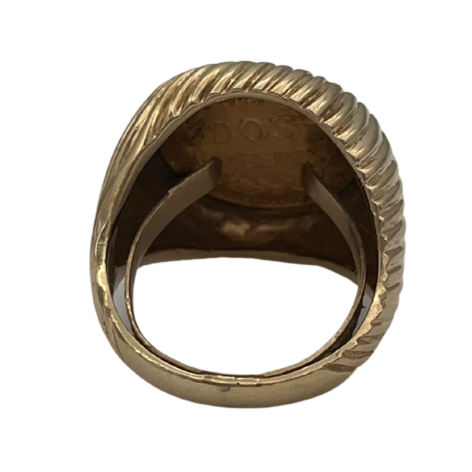 Vintage 1945 dos Pesos Mexican coin in 18k yellow gold ring with U-guard.