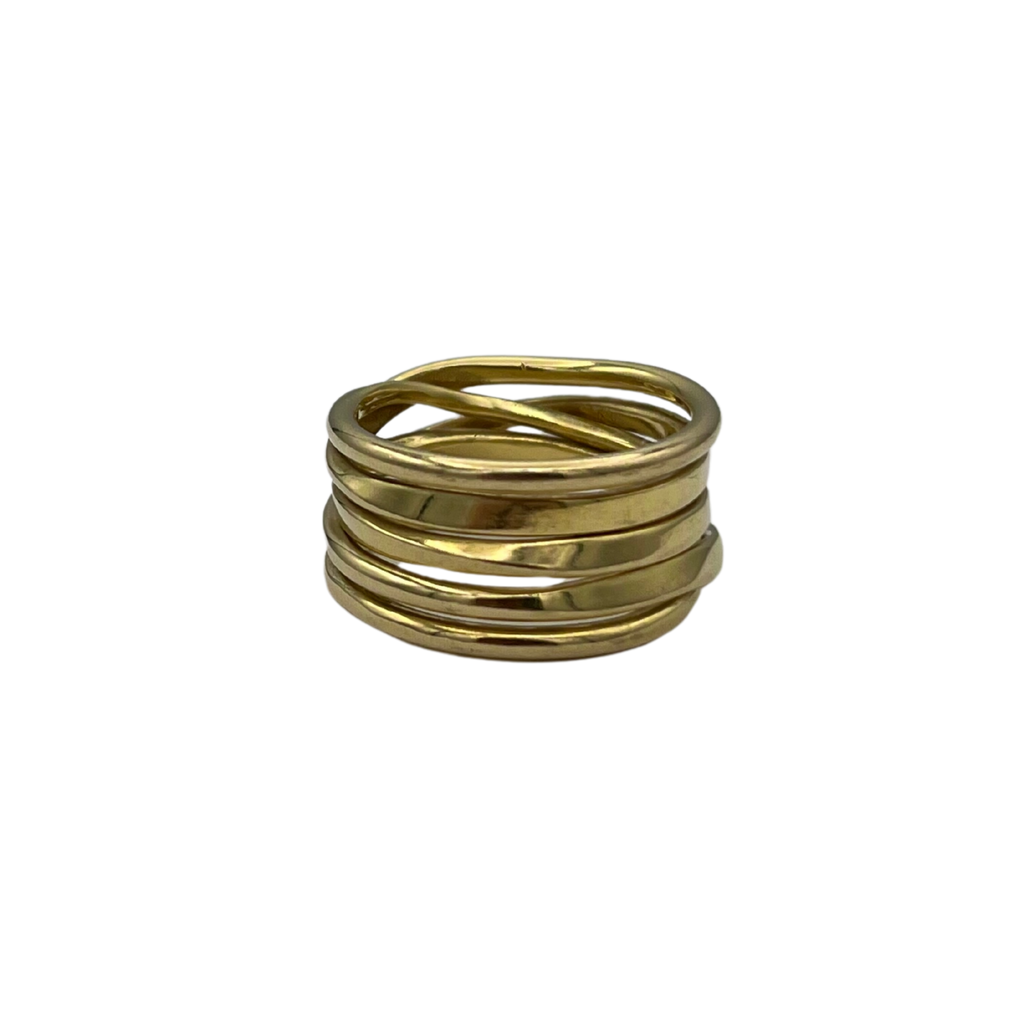 Vintage 5 band uneven stacked ring in 18k yellow gold