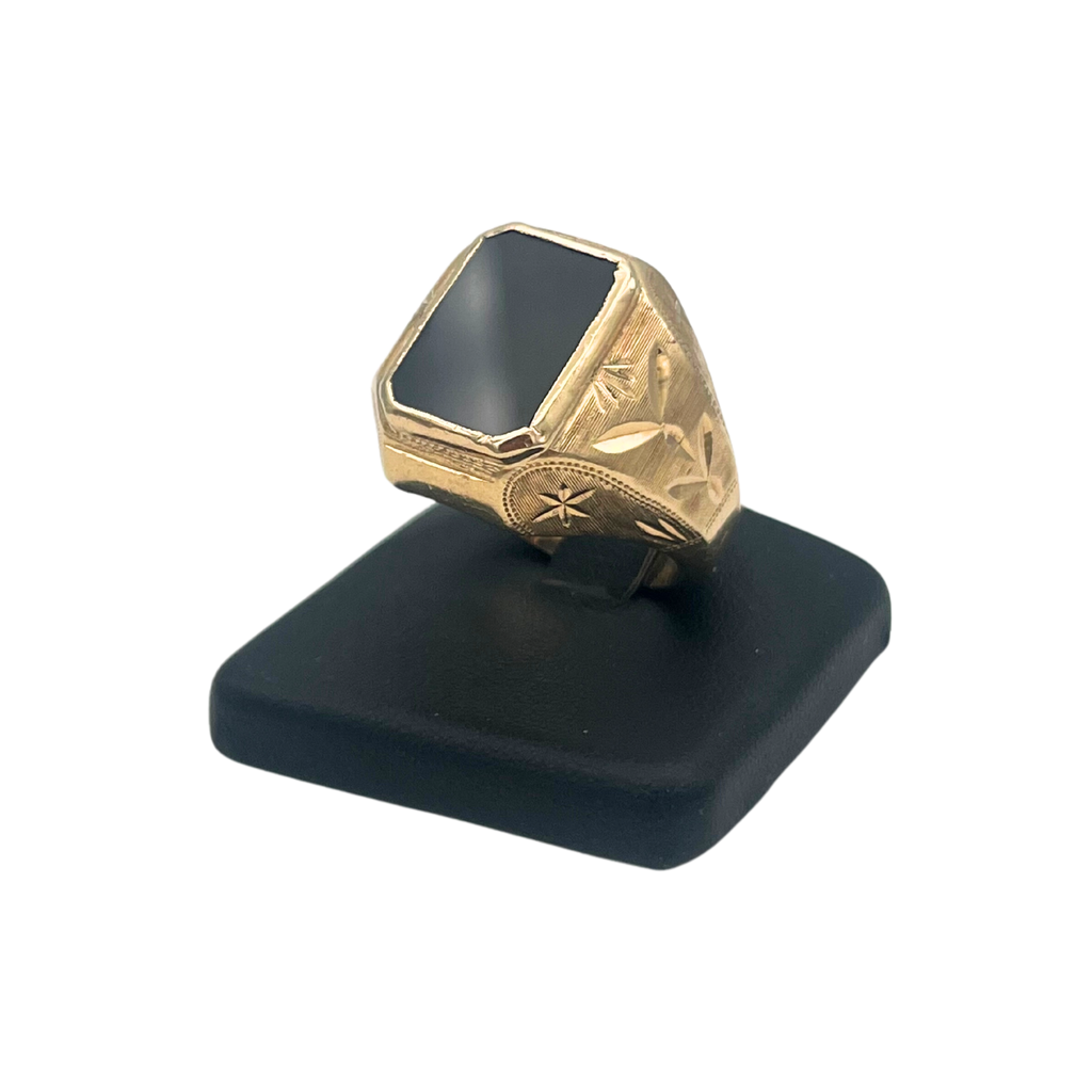 A stunning Hand engraved men's ring in 14k yellow gold.