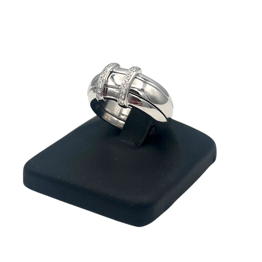 A wonderfully made diamond ring by renown watch maker Omega. The center gold band is removable and fits seemless between the gap in the diamond ring.