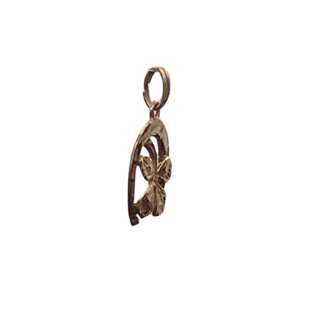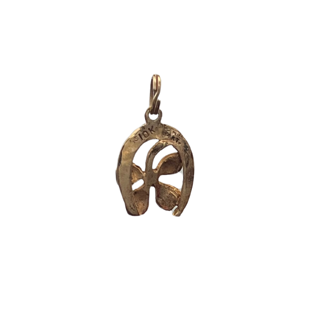 Vintage 10k yellow gold four-leaf clover and horseshoe charm.