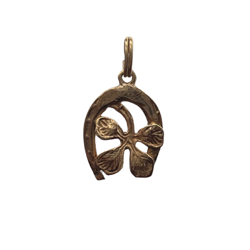 Vintage Artisanal 10k Yellow Gold Four Leaf Clover and Horseshoe Charm