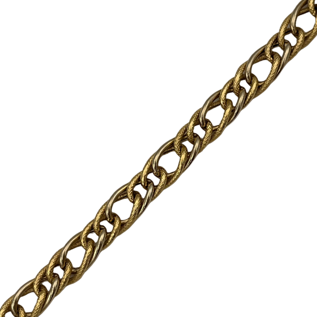 Vintage Italian 18k Yellow Gold Hollow Link Alternating Texture Bracelet