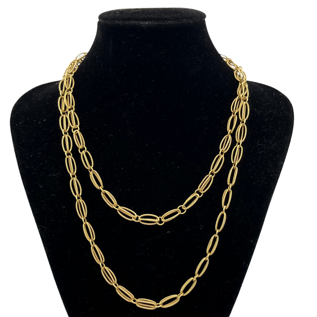 Vintage 18k Yellow Gold Textured Fancy Link Necklace