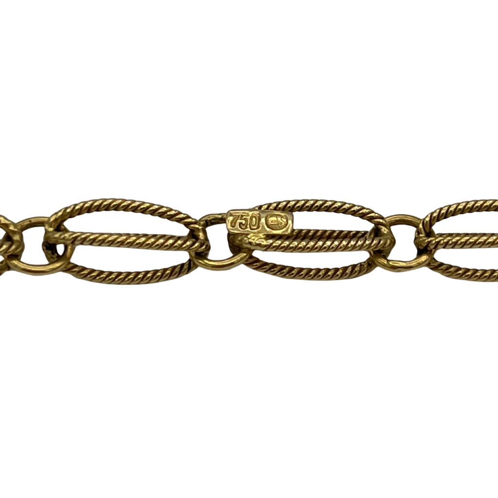 Vintage 18k yellow gold fancy link necklace with a textured cable design.