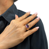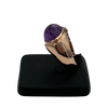Vintage high polish 14k rose gold ring with a large oval cabochon cut amethyst.
