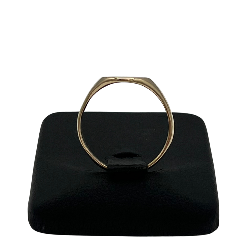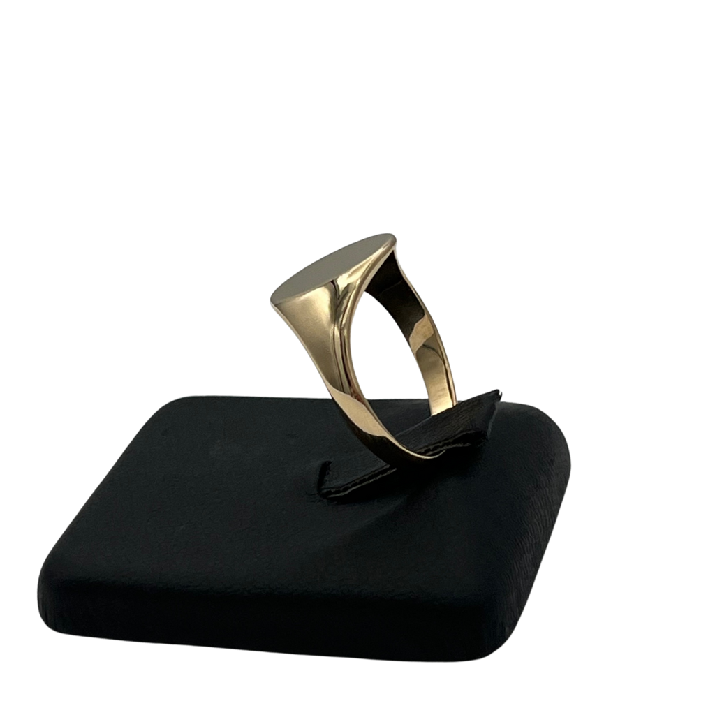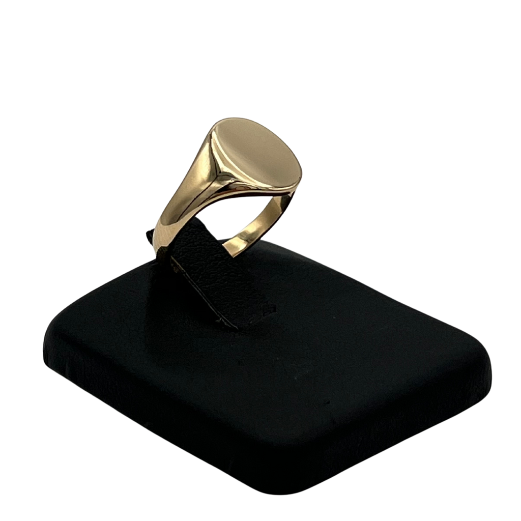 A classic oval signet ring in 14k yellow gold with a high polish finish