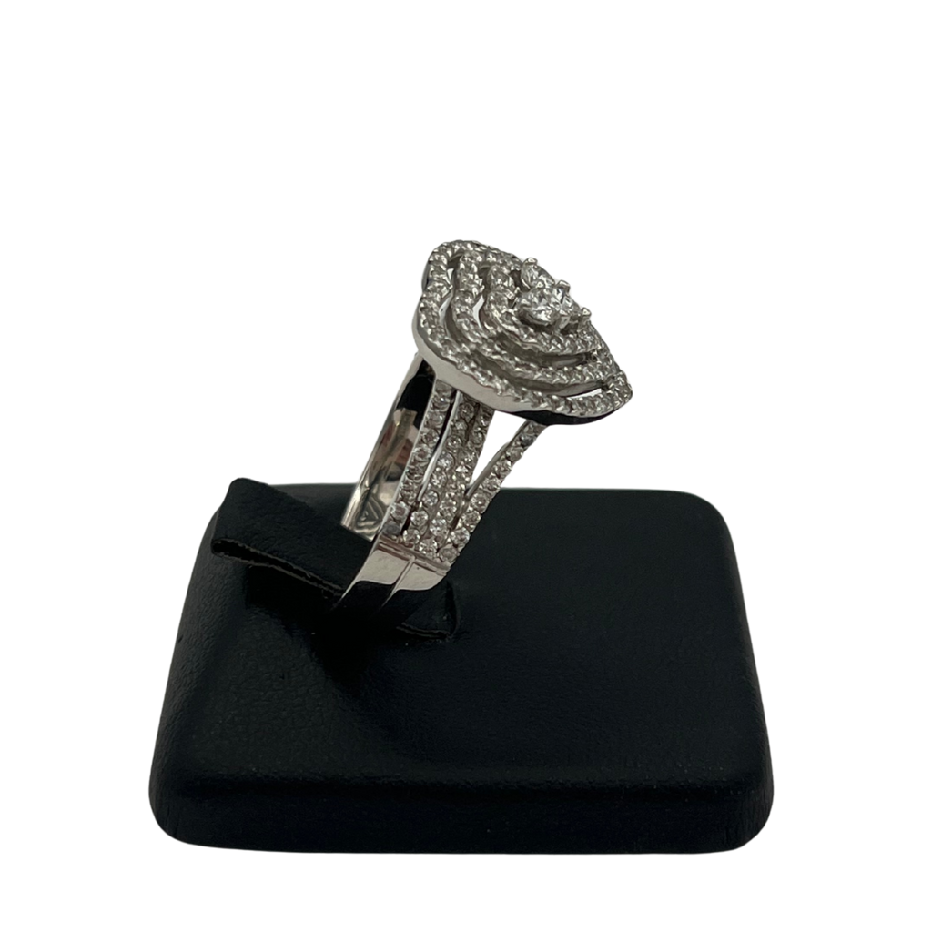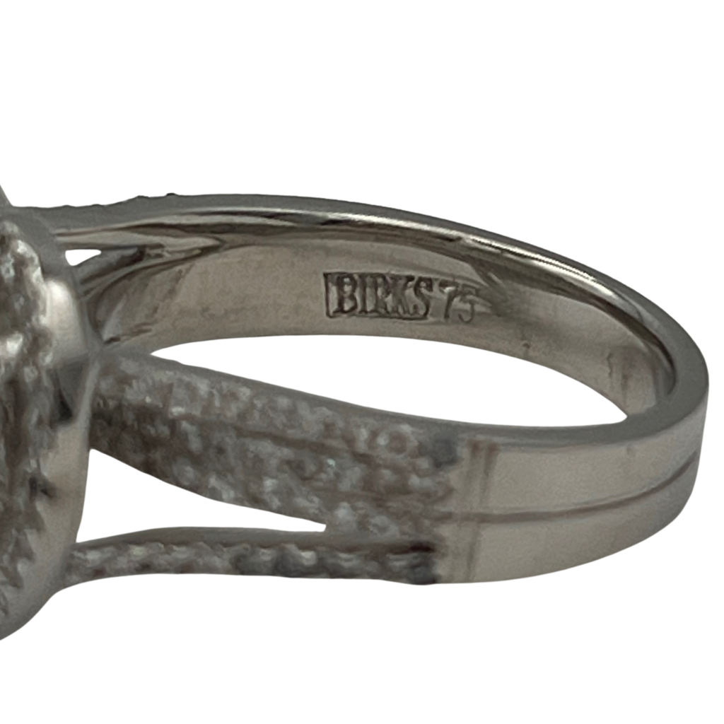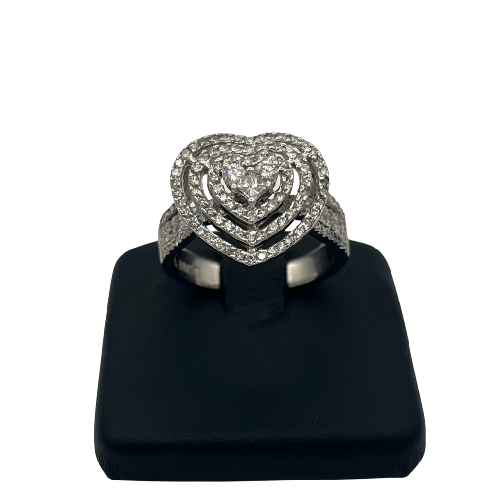 Vintage Birks diamond heart ring featuring concentric rows of pavé diamonds set in 18k white gold.