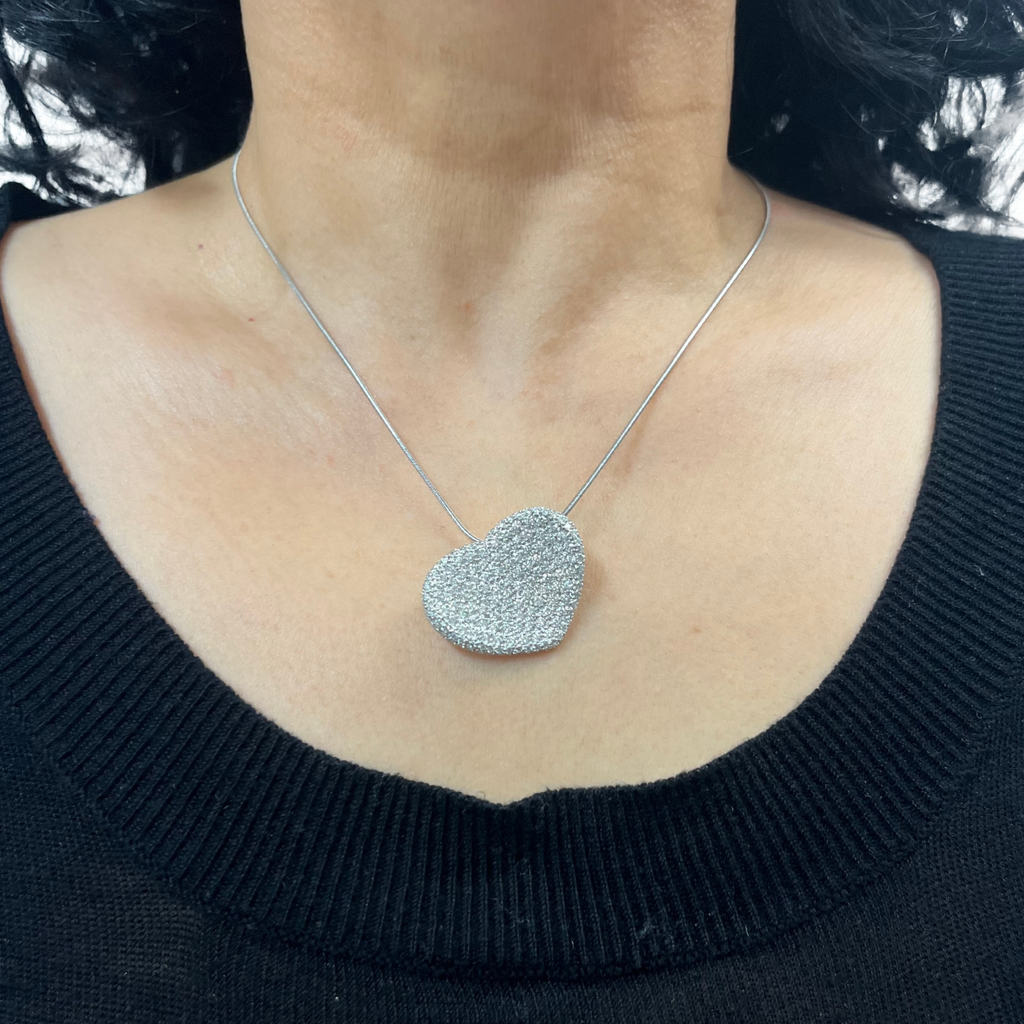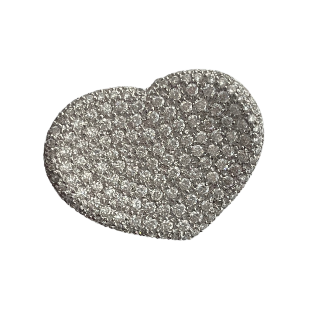 Vintage Birks pavé diamond and 18k white gold heart pendant / brooch.