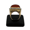 Carnelian: One (1) prong set, oval cabochon cut carnelian stone measuring approximately 20.0mm x 14.8mm. The stone is a deep orange-red colour with faint zoning.
