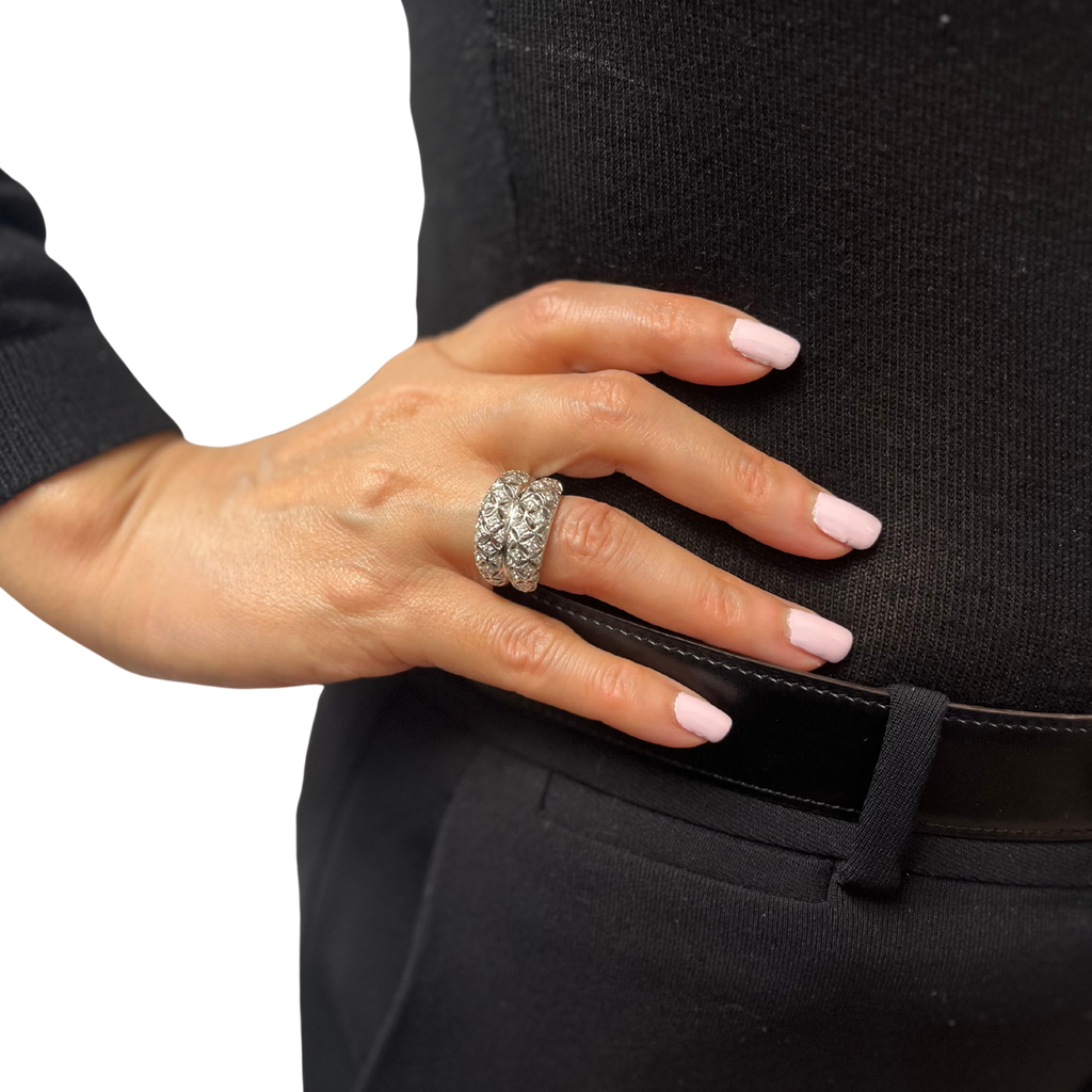 Vintage Diamond 18k White Gold Double Bombay Ring