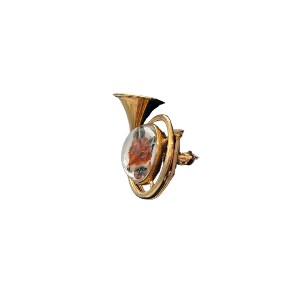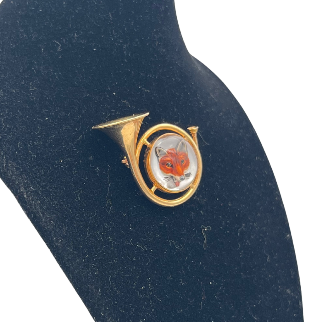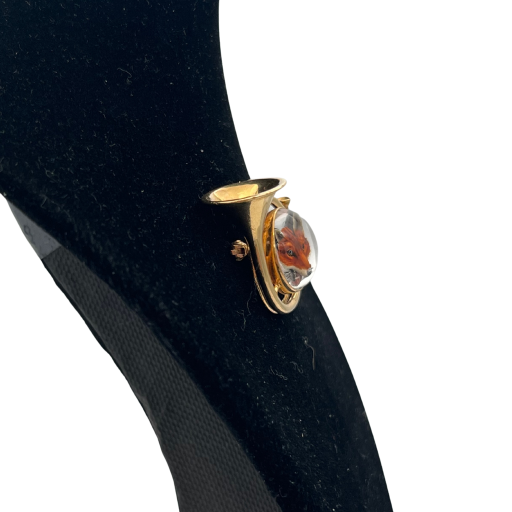 Vintage Essex Crystal Fox Hunting Horn Brooch C.1940