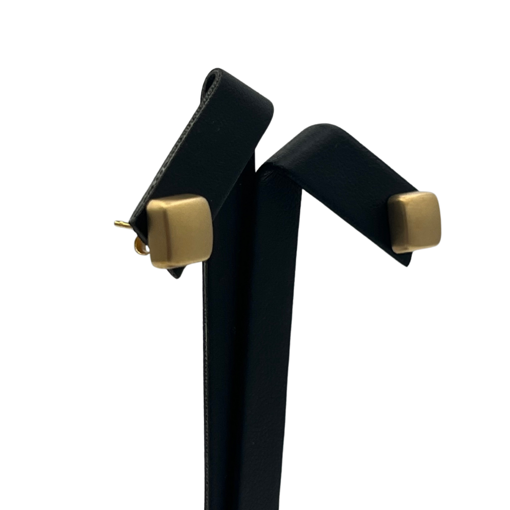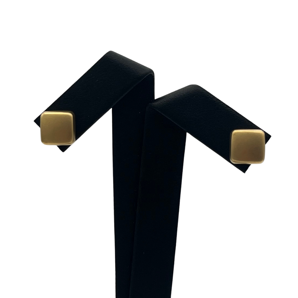 Vintage Italian 18k Yellow Gold Matte Finish Square Stud Earrings