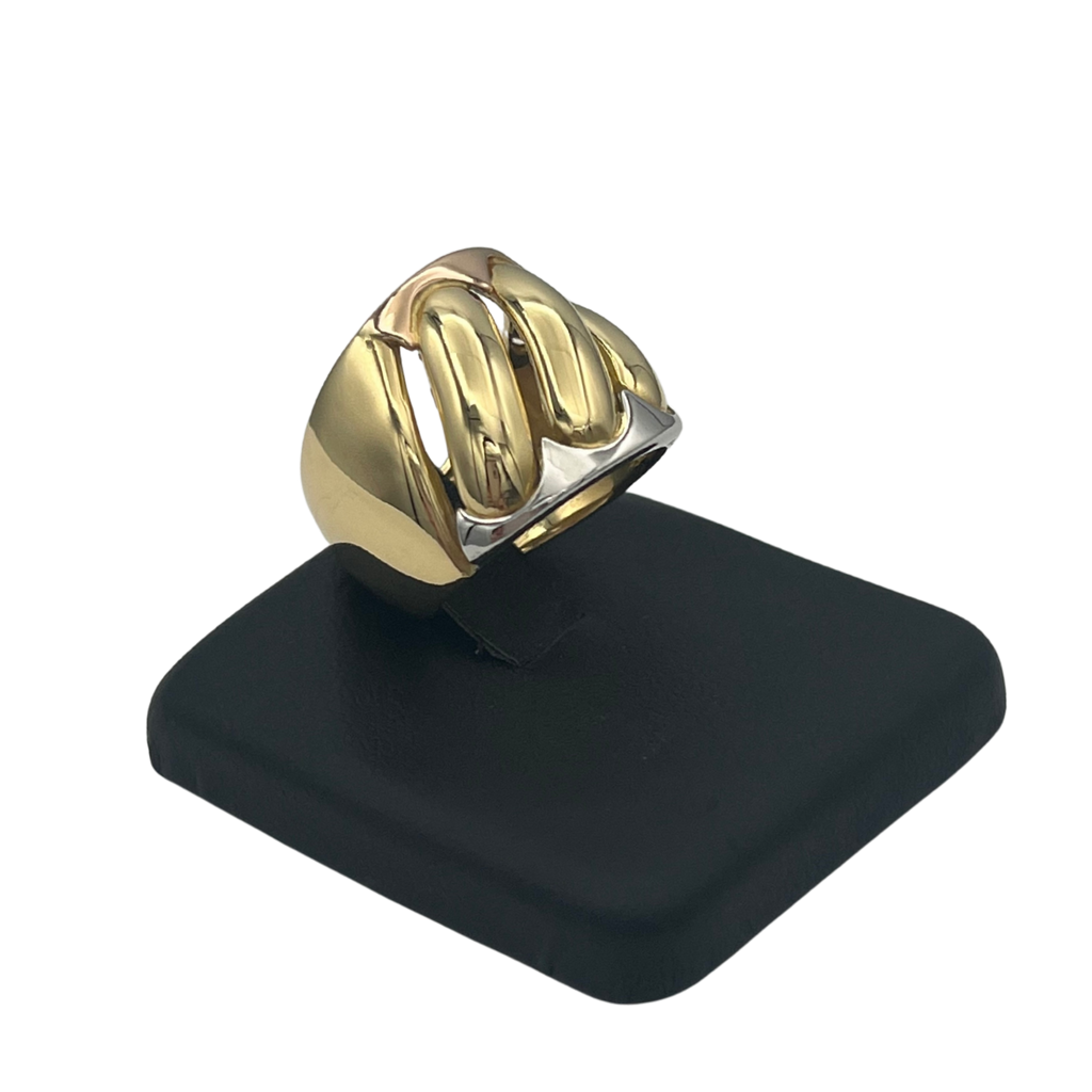 Vintage Italian Solid 18k Three-Tone Gold Open Motif Ring