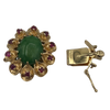 Vintage Jadeite and Ruby 14k Yellow Gold Two Strand Flower Push Clasp