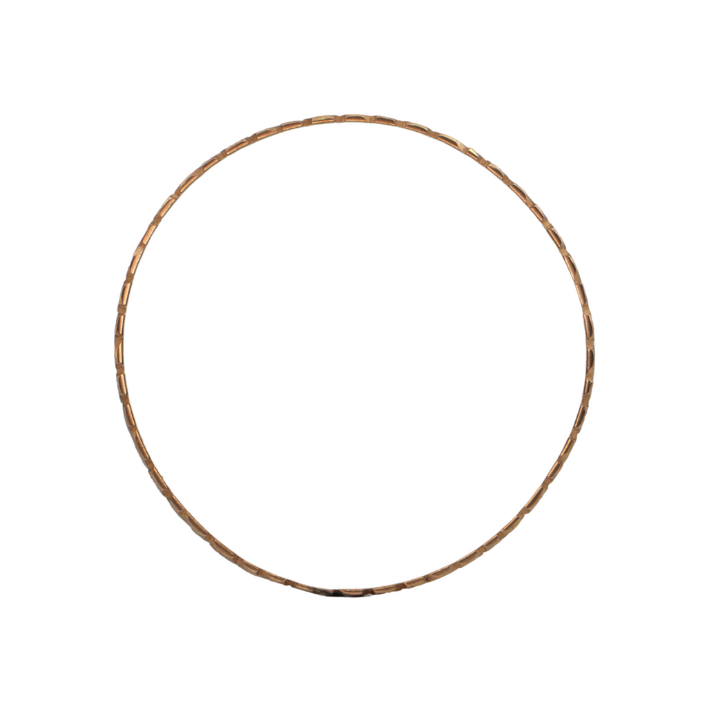 Vintage Moroccan solid 18k rose gold round bangle bracelet featuring a geometric pattern.